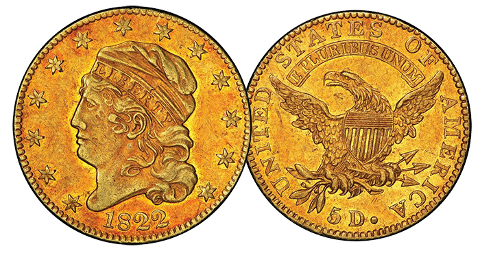 Unless the only legal-to-own 1933 double eagle hits the auction block later this year or someone tries to sell a full red Strawberry cent found stuffed in the horsehair plaster of a Federal-era home, the Stack’s Bowers offering of the only privately-held 1822 half eagle will be the numismatic auction event of the year.