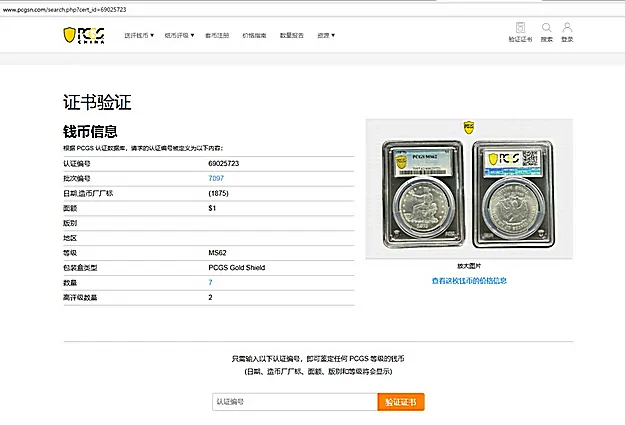 The real PCGS site for verification is https://www.pcgs.com/cert/, any domain other than pcgs.com is fake. (such as pcgs-cn.com, pcgsn.com, pcgs.cn, pcgsverify.cn, etc.)