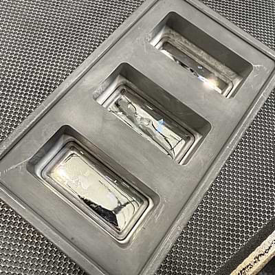 Two silver bars enter the mold under identical conditions. They share the same graphite molds. They melt at the same temperature. Both assay above 99.9% purity.