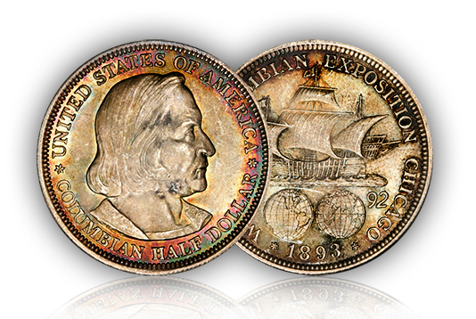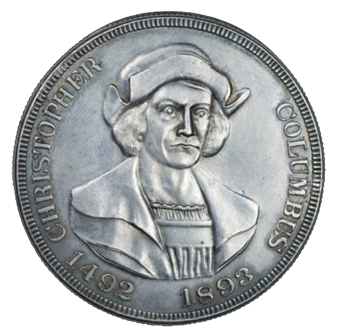 On the occasion of the World’s Columbian Exposition, the United States Mint produced a half-dollar coin bearing a portrait of Columbus. It was the very first U.S. coin bearing the portrait of a historic person as well as the first official commemorative coin.