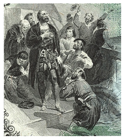 Irving then settled, half-heartedly, for a portrait painted by one Antonio Moro. The portrait, from an old volume of Italian engravings, was favored by Irving’s contacts in Spain, which included Martín Fernández de Navarrete, the author of a collection of Columbus-related documents called Colección de los viajes y descubrimientos, and the Duke of Veragua. Irving included the painting in the abridgment published by Murray of London in 1830[4].