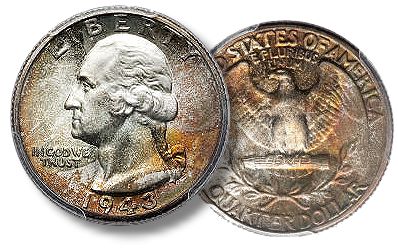 In MS61, a not-certified 1943 quarter is worth less than $8 (at the time of writing). Even in MS63, one could probably be found for $12. The Numismedia.com retail value for an MS64 1943 quarter is “$22.50” – less than one-thousandth of the price of this 1943 quarter.