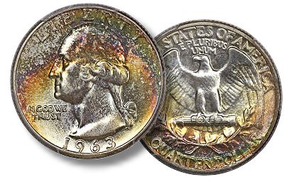 - Silver coins may legitimately increase in grade over time. A MS-65 grade silver coin that is properly stored in an album, of a format that has traditionally been used by many coin collectors, may beautifully tone over a period of five to 30 years. A lifeless coin may become awestriking, though this will not typically occur. For the issues that I have mentioned, other quarters may eventually rise to MS67 or 68 grade levels. Indeed, when contact marks are covered by very attractive, natural toning, the same contact marks have less negative impact on grades than they would if the same respective coins were not toned.