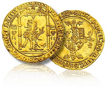A 4.22 gram (0.15 ounce) Belgian coin, a ‘lion of gold’ minted in Bruges, is noteworthy. It is not extremely rare. It is important in an artistic and cultural sense. The growling lion and other symbols are carefully chosen and placed. It was probably minted in the 1450s, and it provides clues regarding the independent and defiant, as well as flamboyant, personality of the reigning duke, ‘Philip the Good’. It is also one of the few coins of the period that is not overcrowded with design elements. This coin has sizeable, carefully balanced fields. It is NGC-graded MS-62, a high grade for a Belgian coin from the 1400s. It sold for $5,750.