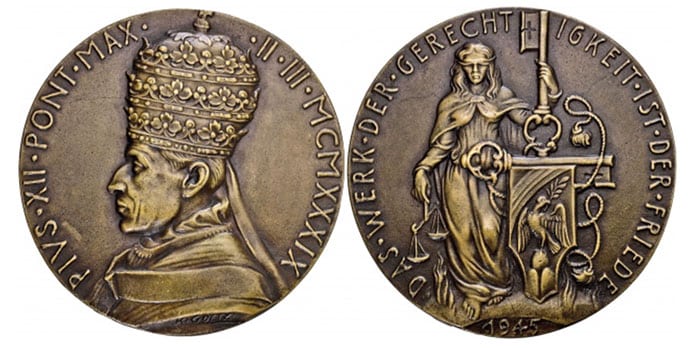 Bronze casting medal 1945, in the occasion of the end of the Second World War.